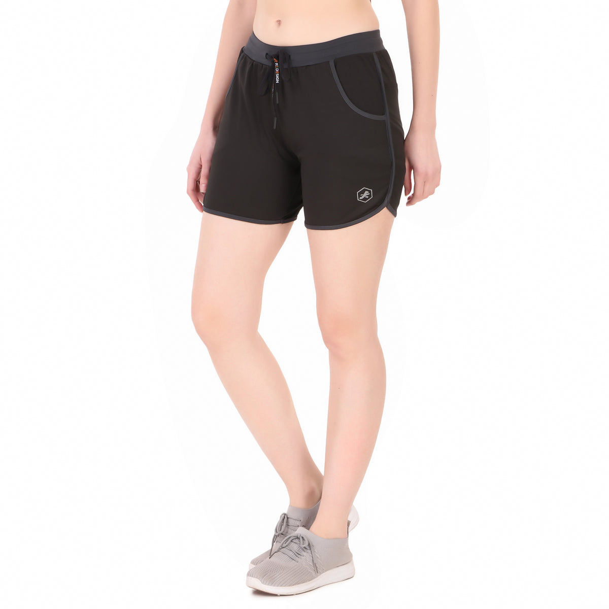 Stay comfortable during your workouts with our ReDesign Gym & Running Shorts for Women. Featuring breathable, ultra soft and stretchable fabric, they are designed to provide support and keep you cool. 2 side pockets and 1 zip pocket. A draw-cord adjustable waist band and an elastic closure ensure a secure fit.